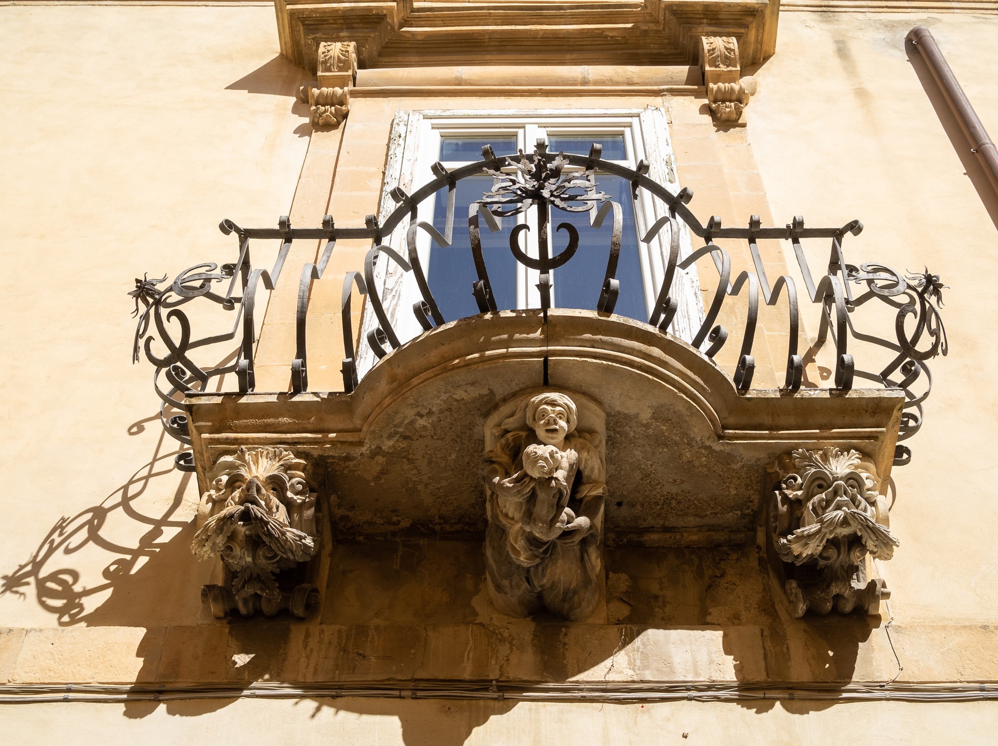 Palazzo La Rocca was purchased by the Regional Province of Ragusa for institutional purposes and is one of the most beautiful late-Baroque buildings (Fig. a). It was rebuilt on the remains of the family palace. Furthermore, in the basement, masonry with ogival openings – typical of the Gothic period – can still be observed.