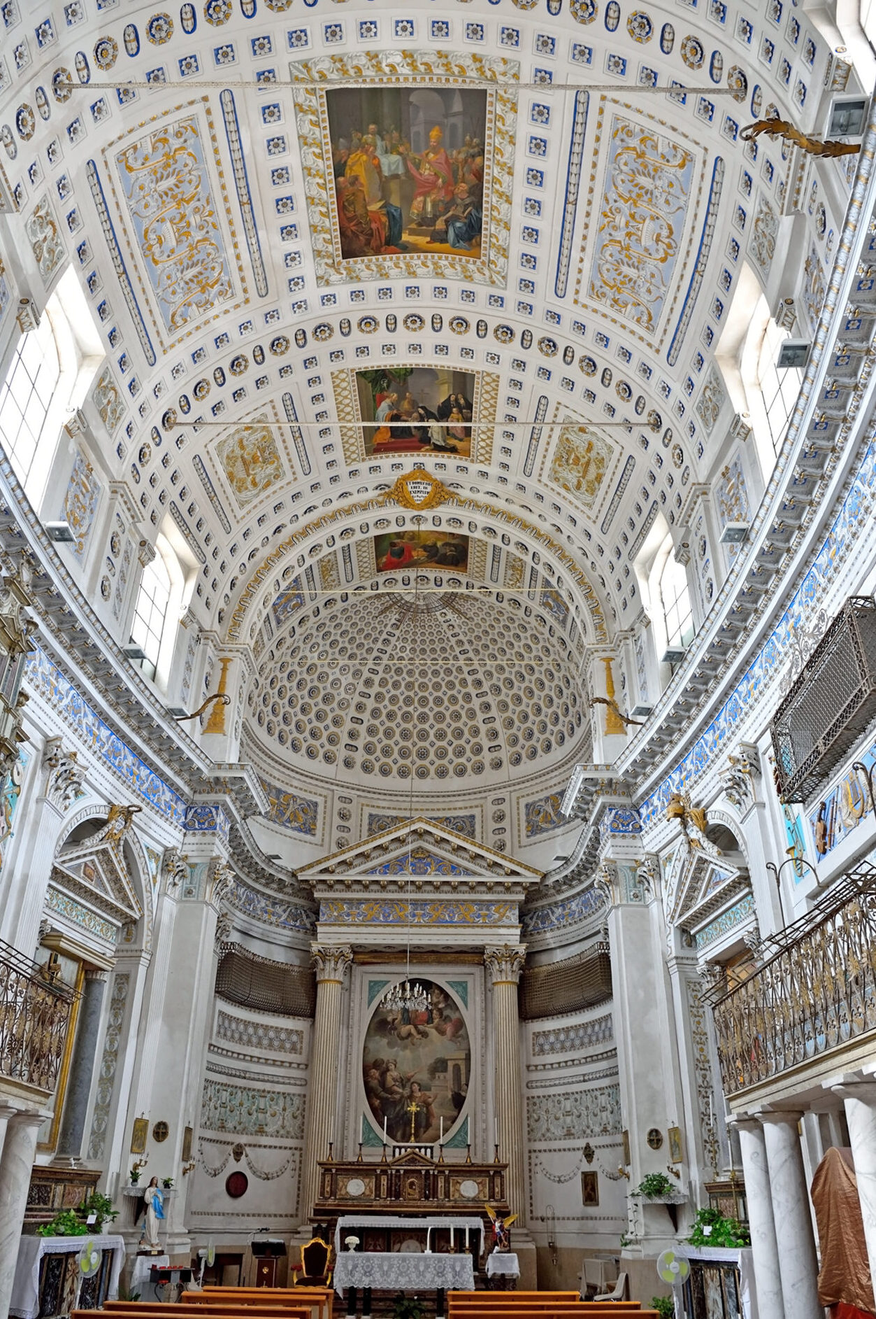 The nave vault is decorated with numerous stuccoes and frescoes depicting biblical scenes.